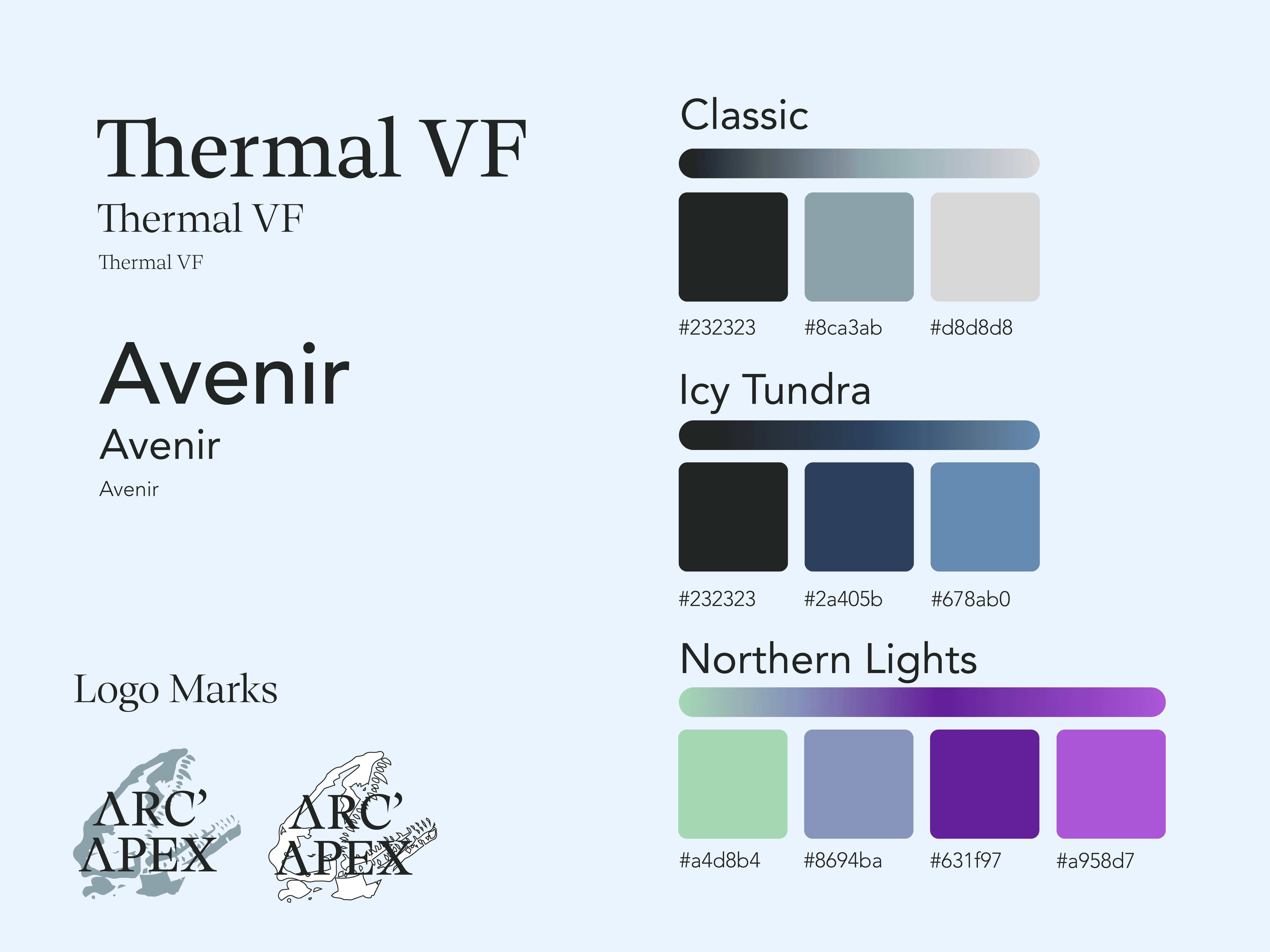 Another important stage of the iteration process involved typography. I experimented with type pairings that could maintain the sleek and technical feel of Arc’teryx while still functioning well within a beverage context. This included testing weight, spacing, and hierarchy to ensure the brand name, product line (“Arc Apex”), and flavor information were clearly communicated without overwhelming the minimalist layout. Multiple color schemes were also explored to distinguish different beer varieties while keeping the overall system cohesive.